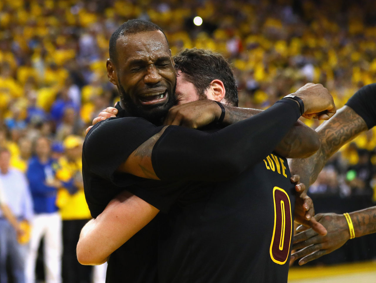 James was understandably overwhelmed with emotion as the Cavs clinched their Game 7 victory - and The Finals - over the Golden State Warriors, hugging teammate Kevin Love while crying tears of joy.