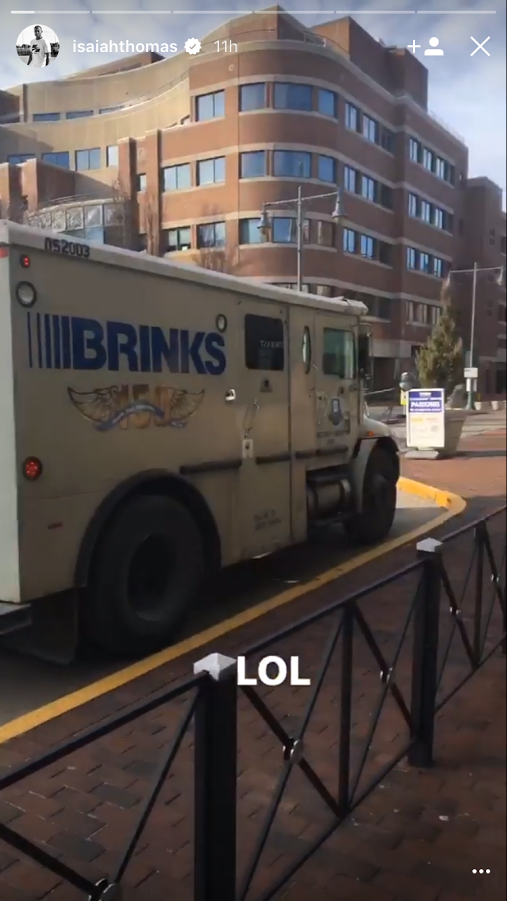 The next day, the 27-year-old shared a video on Instagram of a Brinks truck parked in front of him.