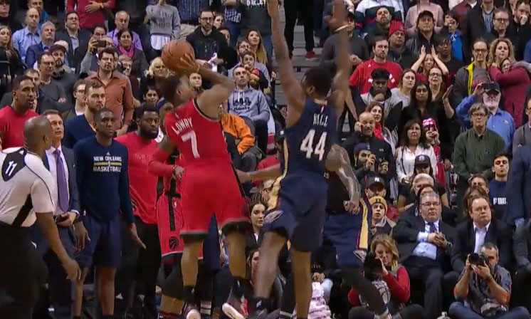 The shot that did it! #KyleLowry pours in 33p & 10a for the @raptors & they defeat the @PelicansNBA 108-106 in OT. #WeTheNorth pic.twitter.com/NDS9tIOo1U