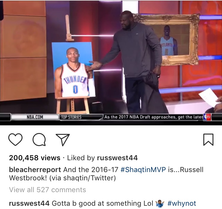 After being crowned the 2016-17 Shaqtin' A Fool MVP on Tuesday night, the Oklahoma City Thunder point guard offered somewhat of an acceptance speech on Instagram.