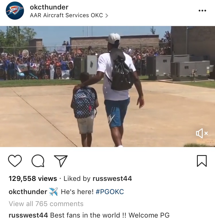 Fresh off his MVP win, it was reported Russ would prolong his career in OKC by signing another extension shortly after midnight on July 1. He's yet to make anything official, but he has indicated that Oklahoma is where he wants to be, and even called the state "home" in a recent ad. He said Tuesday that the club has the best fans in the world after supporters came out in droves to greet new star swingman Paul George.
