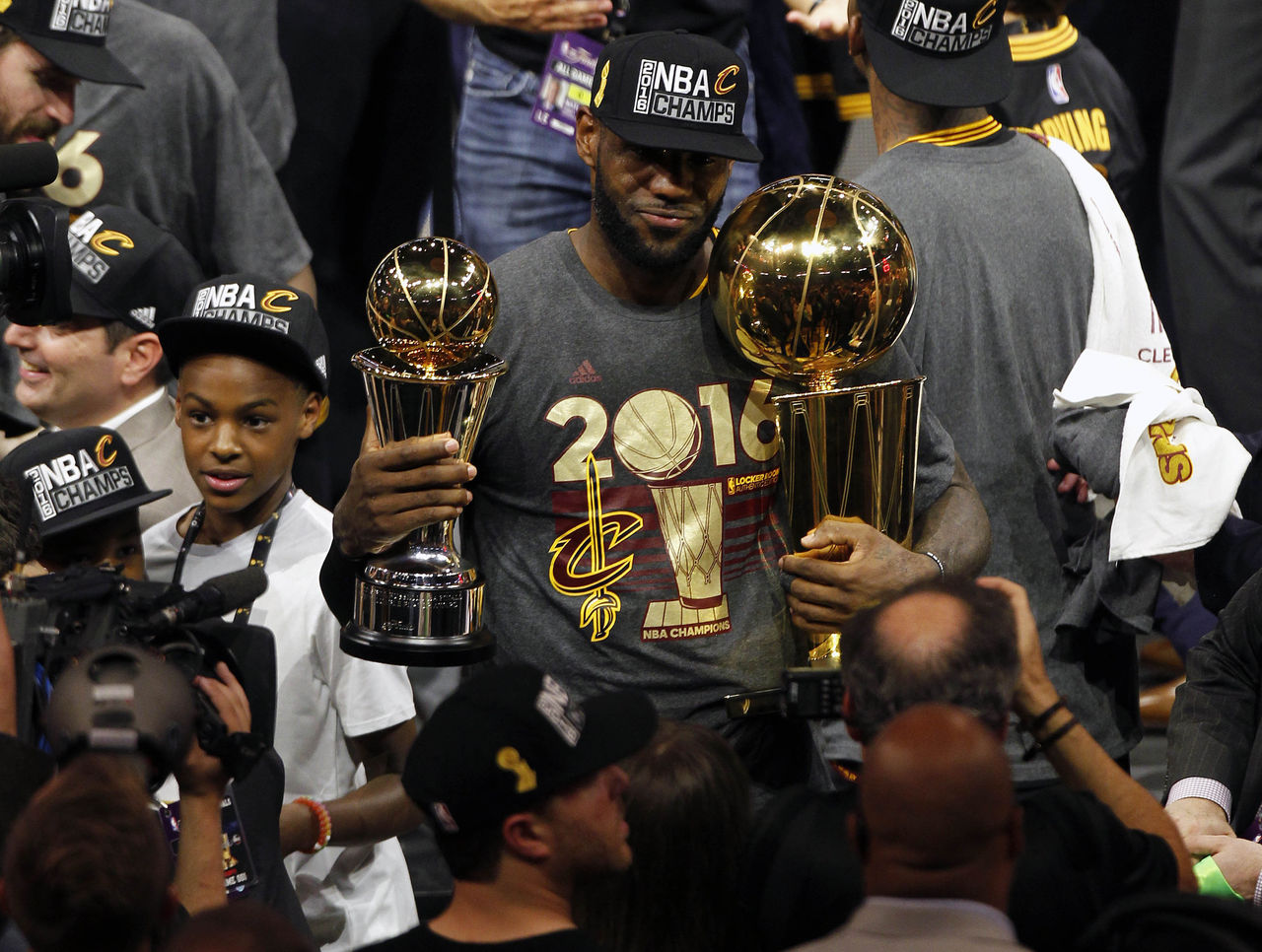 Even when the Cavaliers completed their exhilarating comeback in 2016, it was James who got the money quote ("Cleveland, this is for you!"), James who captured the Finals MVP, James who was featured in the two most iconic photos (one with both hands full of trophies, the other with his right hand on Andre Iguodala's layup), and James who became immortalized with his career-defining accomplishment. Never mind that Irving made the championship-winning shot, or that Cleveland would have lost the series in five were it not for Irving's 41-point explosion. The accolades and the subsequent summer belonged to James.