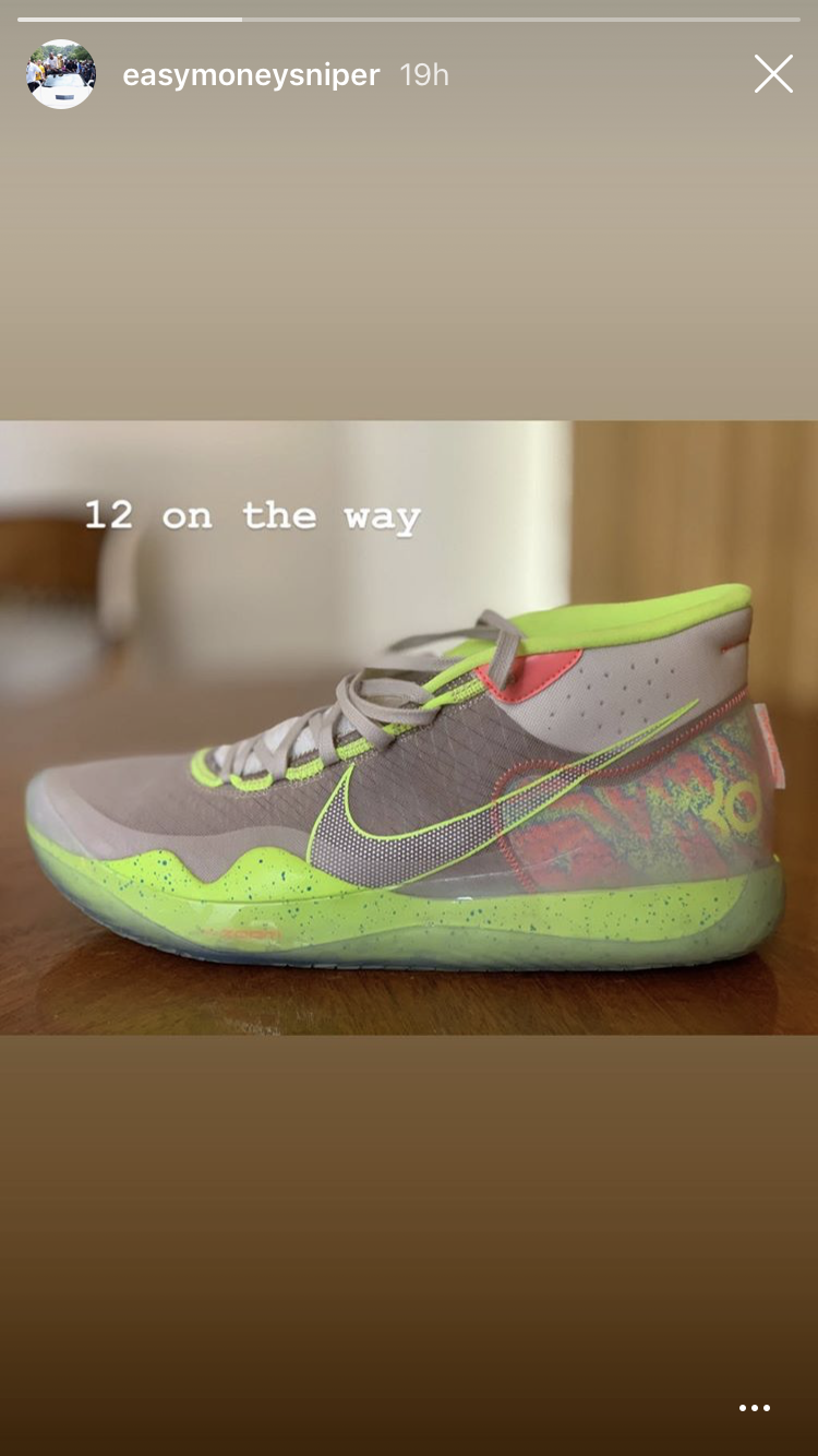 After photos of the Nike KD 12 leaked online earlier this week, the Golden State Warriors star shared an official first look at the shoe in his Instagram story Thursday.