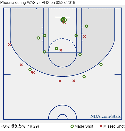 He converted 19-of-29 from the field, 3-of-9 from behind the arc, and 9-of-10 from the charity stripe in 37 minutes of action. He also registered 10 rebounds and four assists, but did contribute five of Phoenix's 15 turnovers.