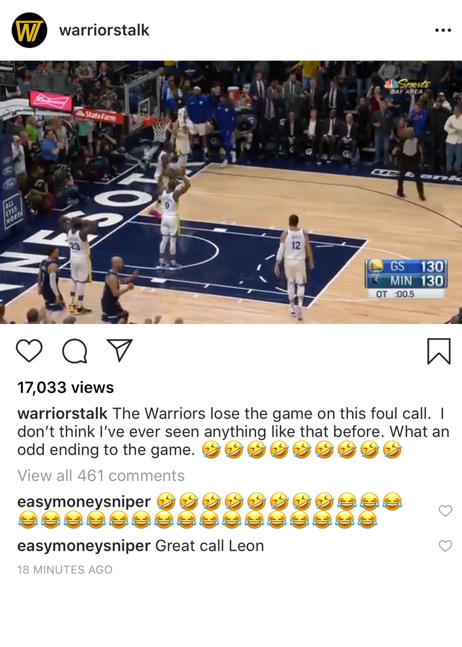 Durant, known on Instagram as "easymoneysniper," wasted little time delivering his take on referee Leon Wood's call.