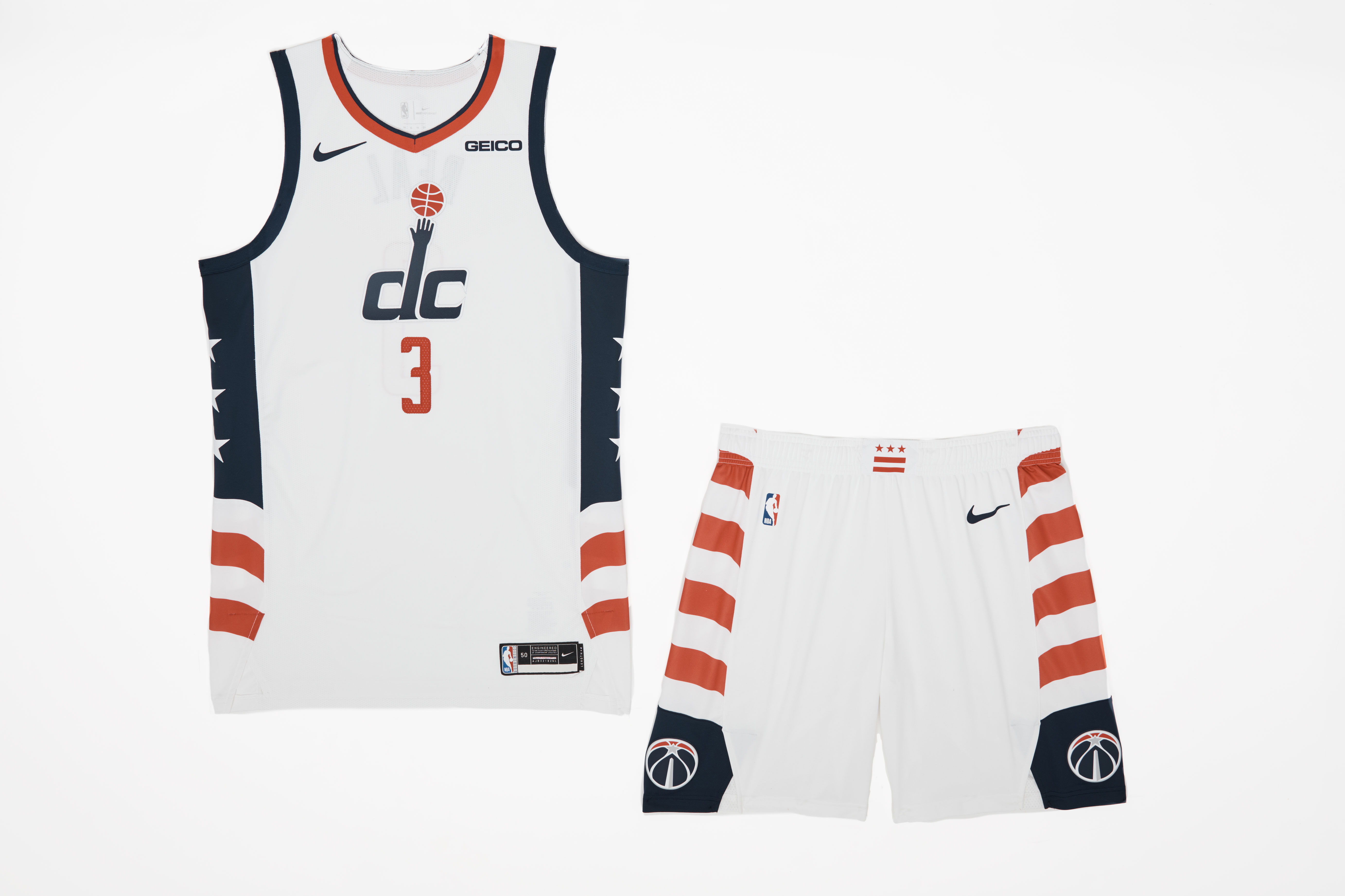 U.S. Flag Code purists will roll their eyes, but the stars-and-stripes side paneling is an easy win; a localized version of national team jerseys. But will we ever see an actual prestidigitator incorporated into the Wizards' branding again?
