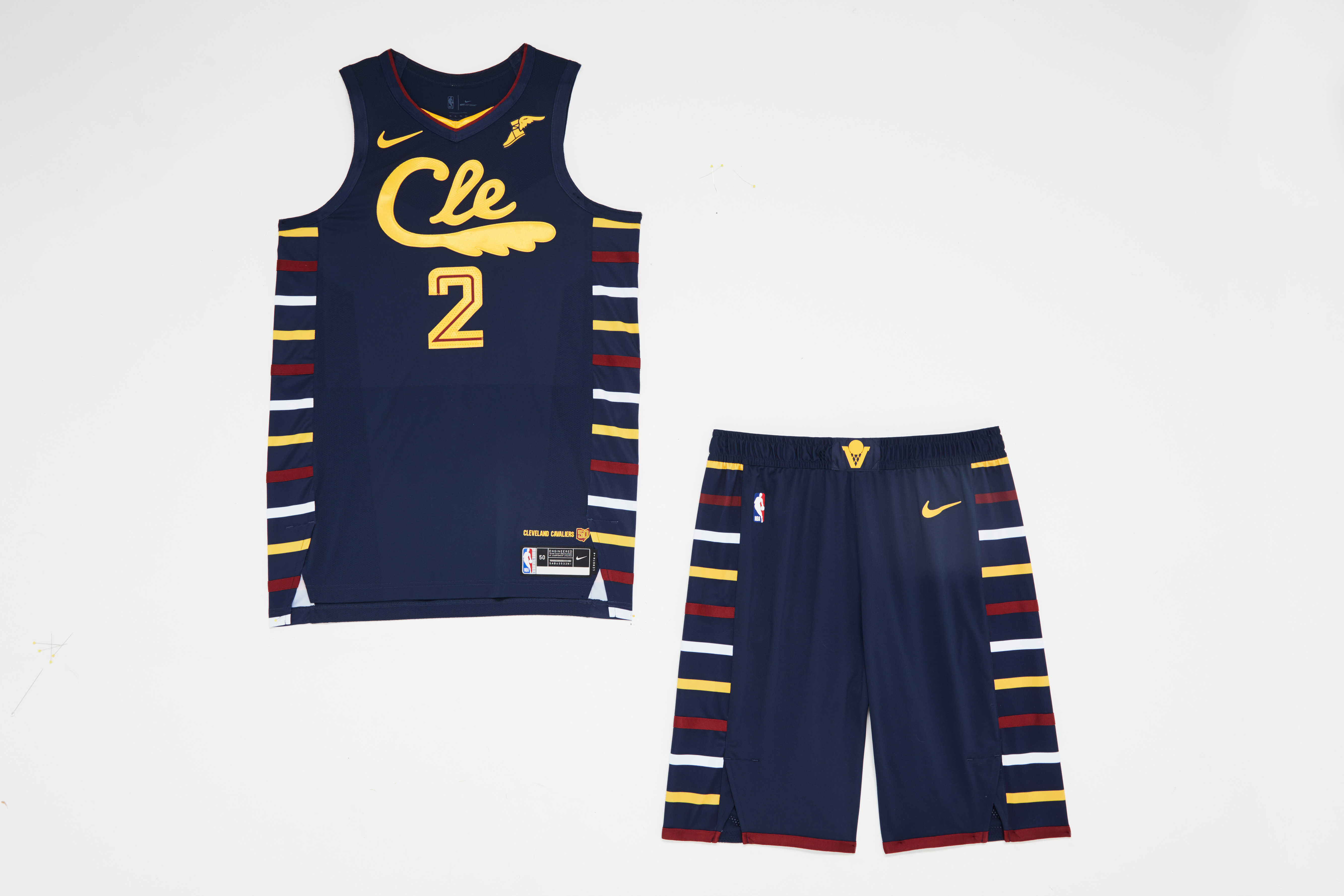 This jersey is a keeper. The tri-colored ribbing, featuring a subtle nod to the Cavs' sky-blue unis of yesteryear, is sufficiently spaced out to prevent a cluttered look. The "Cle" wordmark with the feather elevates what might have otherwise been a standard block-letter design, which plagues a number of lesser looks this year.