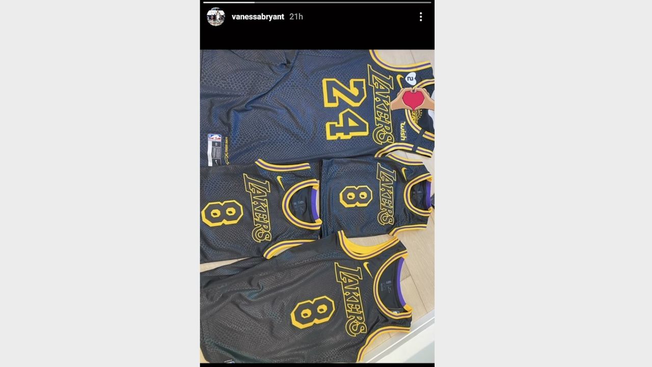 On Tuesday, Bryant's widow, Vanessa, posted pictures of the jerseys on Instagram. One of them had a white patch featuring their late daughter Gianna's No. 2.