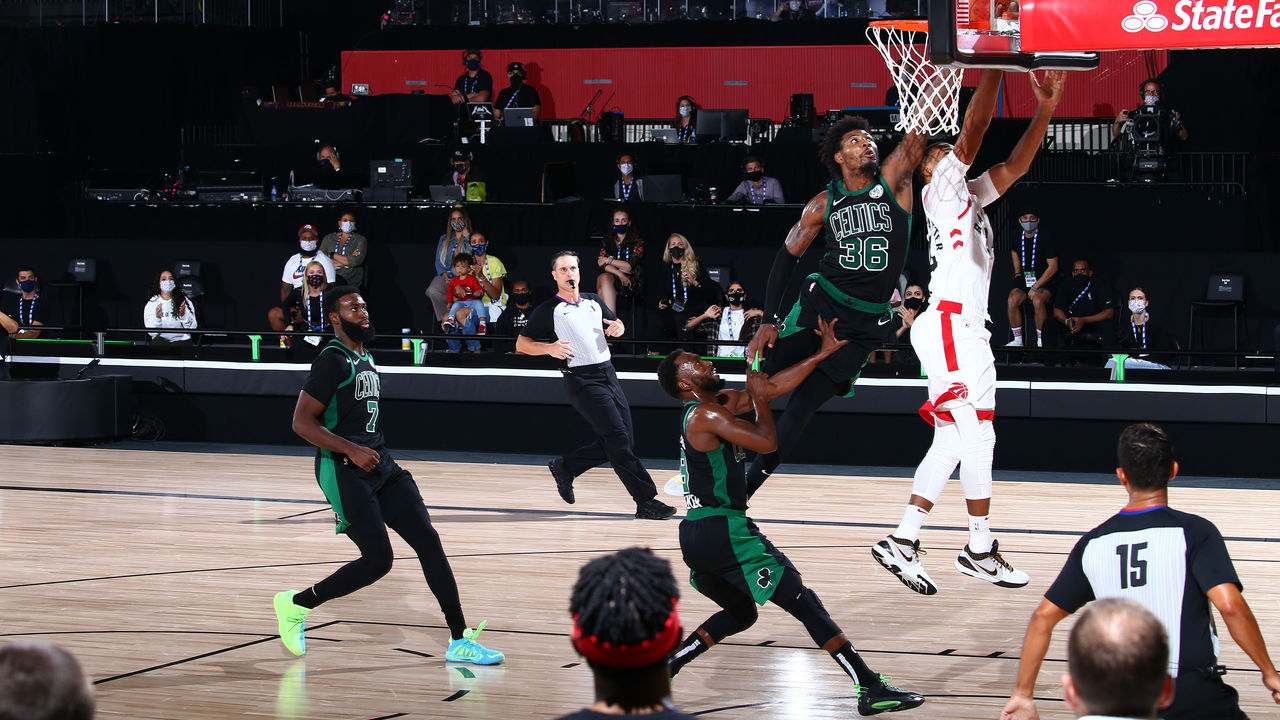 The game's final minute was even worse. Siakam collected a defensive rebound with the Raptors down two and 1:01 remaining, but rather than hand off to Lowry, he passed to Powell, who inexplicably blasted off on a 1-on-3 fast break that ended with Smart's sensational block. That led to the Celtics possession that resulted in Lowry fouling out and putting Grant Williams on the free-throw line with 35 seconds remaining. Williams then missed both, but Powell failed to box out Tatum, who secured the rebound, drew a foul from Powell in the process, and proceeded to knock down one of two free throws to put Boston up three.