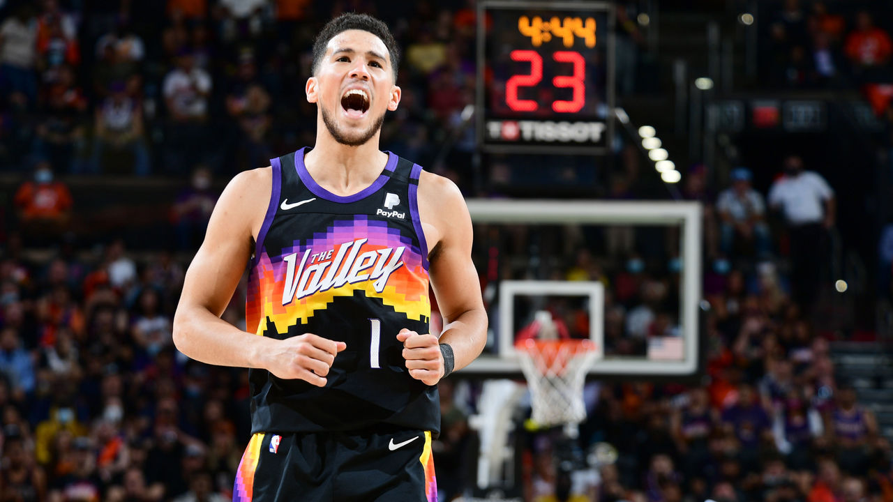Devin Booker also had his first taste of the playoffs, and though Chris Paul's lingering shoulder injury and a lack of historical precedence stood against him, the Phoenix Suns handed LeBron James the only first-round exit of his career to date. Playing nearly 41 minutes per game, Booker averaged 29.7 points, 6.2 rebounds, and five dimes while shooting about 43% on threes.