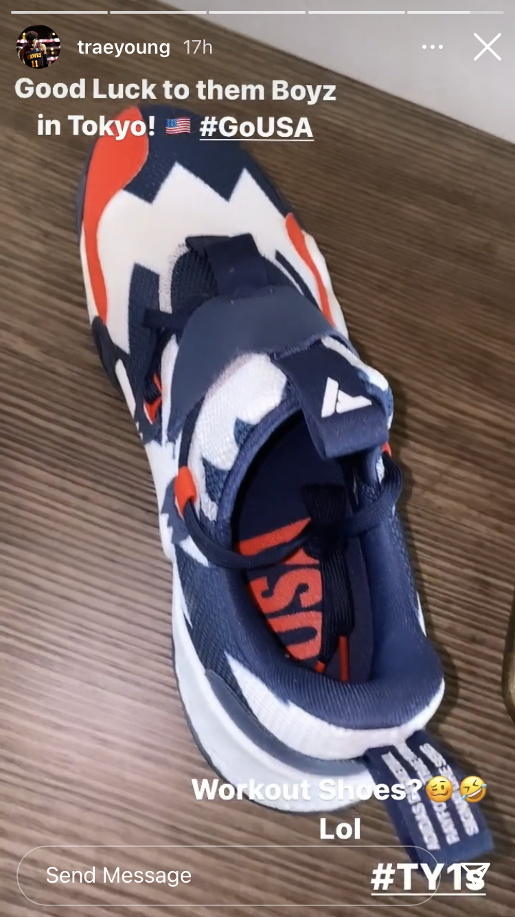 The Atlanta Hawks star showed off a Team USA-themed colorway of his Adidas Trae Young 1 on Instagram on Thursday with the caption "workout shoes? Lol," referencing him being left off the U.S. men's national basketball team.