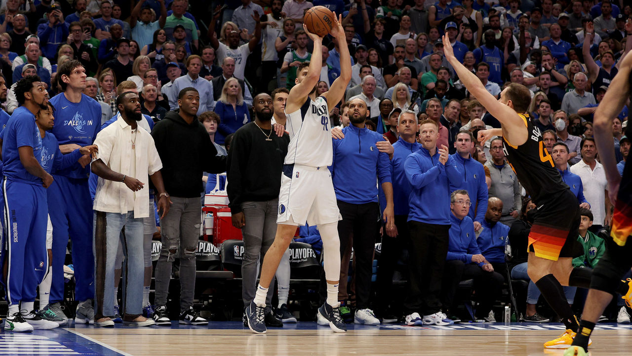 An unfathomable 17 of the Mavs' postseason franchise-record 22 made 3-pointers Monday were uncontested. Utah's defense gave up more uncontested threes than any team has surrendered in any playoff game over the last decade. Kleber alone drained eight treys, and only one was contested. Jalen Brunson erupted for 41 points on 60% shooting. A Dallas team that scored at a rate equivalent to the 25th-ranked offense with Doncic on the bench this season put up an offensive rating of 123.6 in Game 2.