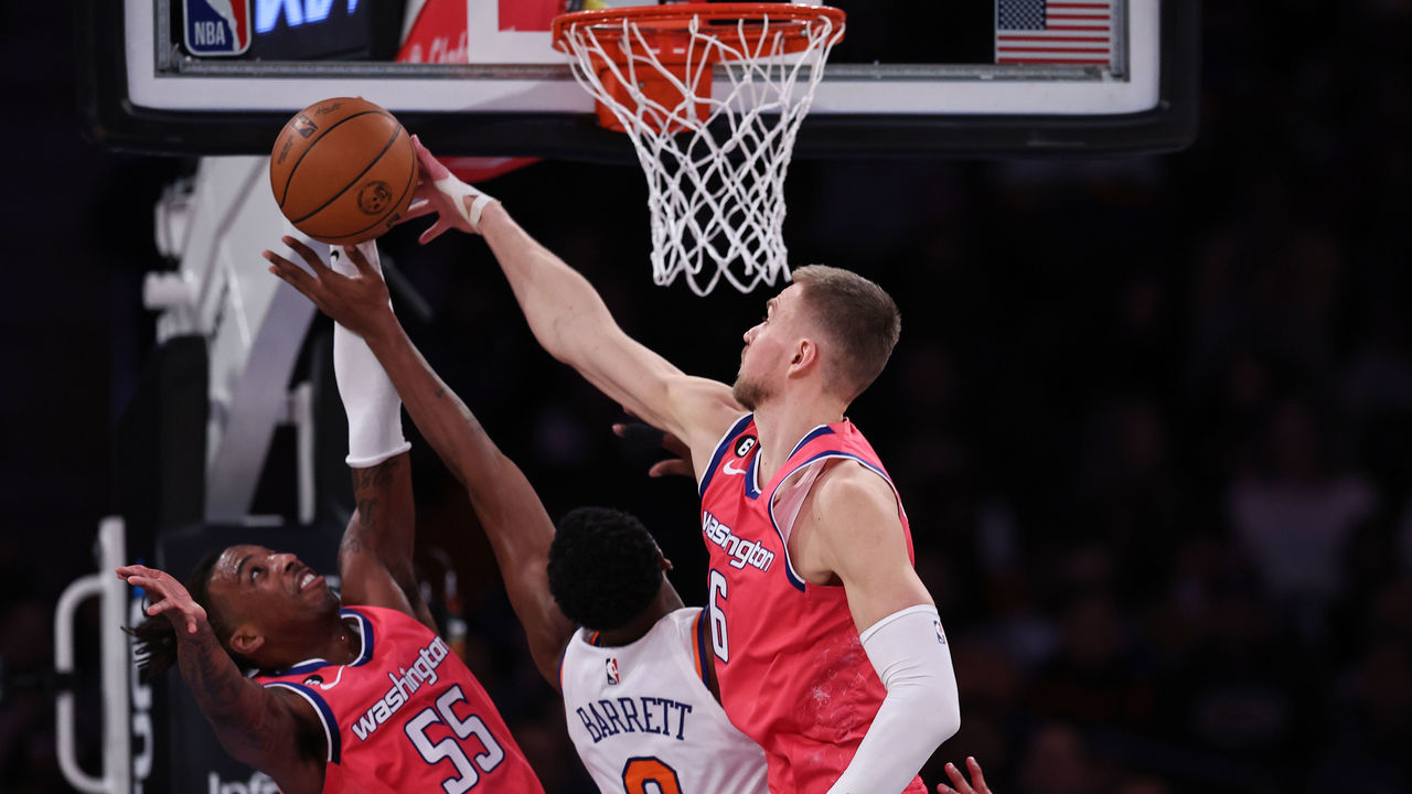 Porzingis' pick-and-roll defense can be exposed by more mobile big men, but he's once again one of the league's best help defenders and rim-protectors. Among the 161 players who've defended at least 100 shots at the rim this season, Porzingis ranks in the top 20 in defensive field-goal percentage (56.0%), just behind Myles Turner. Of the 120 players who've defended at least 500 shots overall, only four have had a more negative effect on opponents' shooting than Porzingis, according to NBA.com.