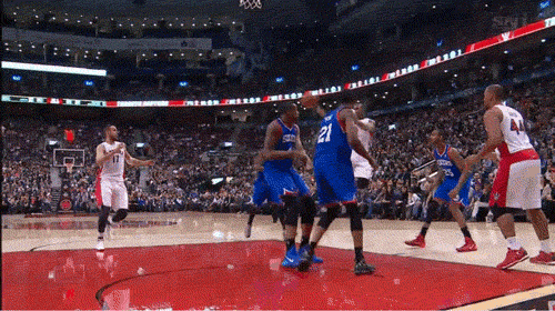 Toronto Raptors center Jonas Valanciunas has already matched his season-high with 23 points midway through the third quarter of Wednesday's game against the Philadelphia 76ers - a total that includes this dunk on 76ers power forward Jarvis Varnado: