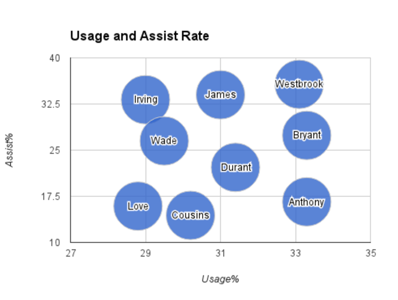 Anthony isn't necessarily a ball-hog, but his assist numbers pale compared to some other high-usage scorers. He's averaged 3.1 assists for his career and 3.1 assists over the last three seasons, but his 16.6 percent assist rate during those three years doesn't quite keep up with his 33.3 percent usage rate.