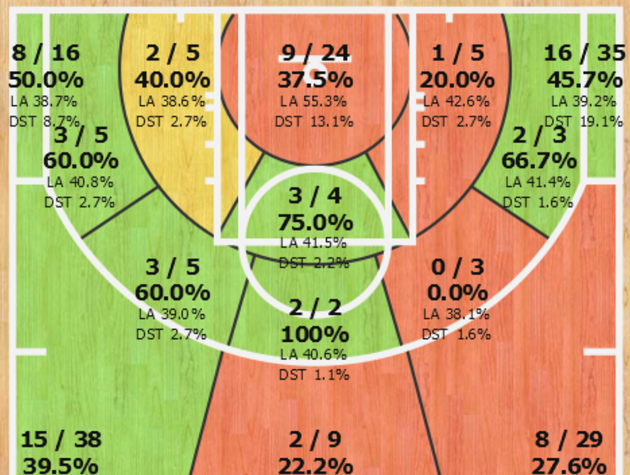 The Houston Rockets' veteran is more about volume than anything, but he's hit at an impressive 38 percent clip for his career, just shy of his 38.5 percent mark on the season. At age 37, Terry's seeing an uptick in attempts after a three-year decline, as the Rockets are asking him to do almost nothing but spot up. As a result, 69.5 percent of his attempts have come from beyond the arc.