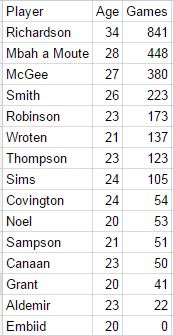 Of the 15 players on the Sixers' roster, Robinson, the fifth overall pick only three years ago, ranks fifth in terms of career games played with 173 and is the seventh-oldest player on the team.