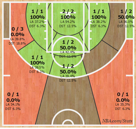 His most impressive number of all, though, came from his shooting percentages - an area the 37-year-old has been dreadful in through the first 20 games. Bryant managed to convert 50 percent of his shot attempts (8-of-16) for the first time this season, which he was certainly surprised to hear when told of the statistic after the game.