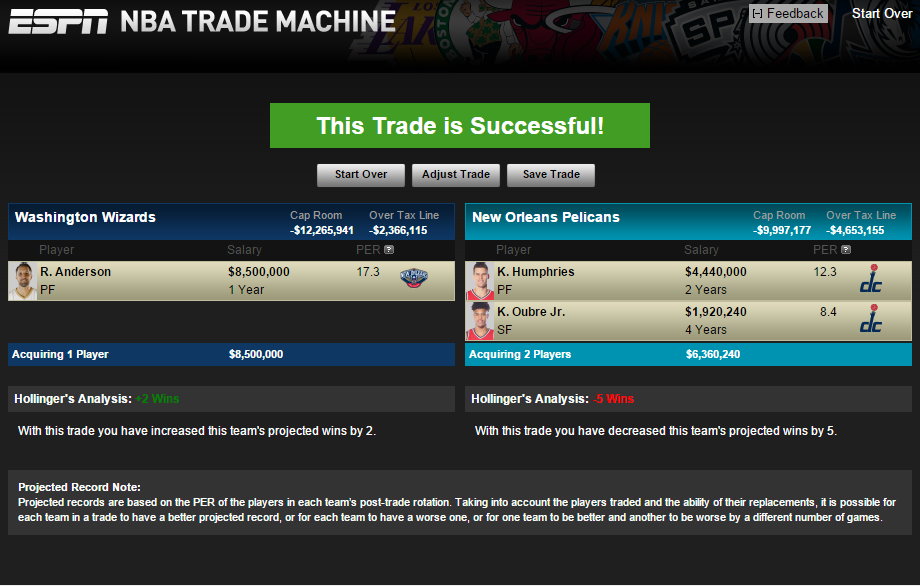 Pelicans fans need to temper expectations in terms of what they're hoping will come in a package for Anderson, who may ultimately turn out to be a rental for any squad he potentially lands with. A veteran frontcourt presence in Humphries and a rookie with a world of potential in Oubre is realistic, fair compensation.