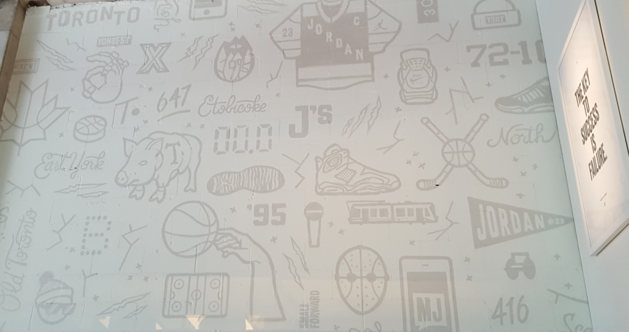 The aforementioned mural includes an ode to Toronto's "Hogtown" moniker, hockey culture, and the 1995 launch of the hometown Raptors, among other illustrations.