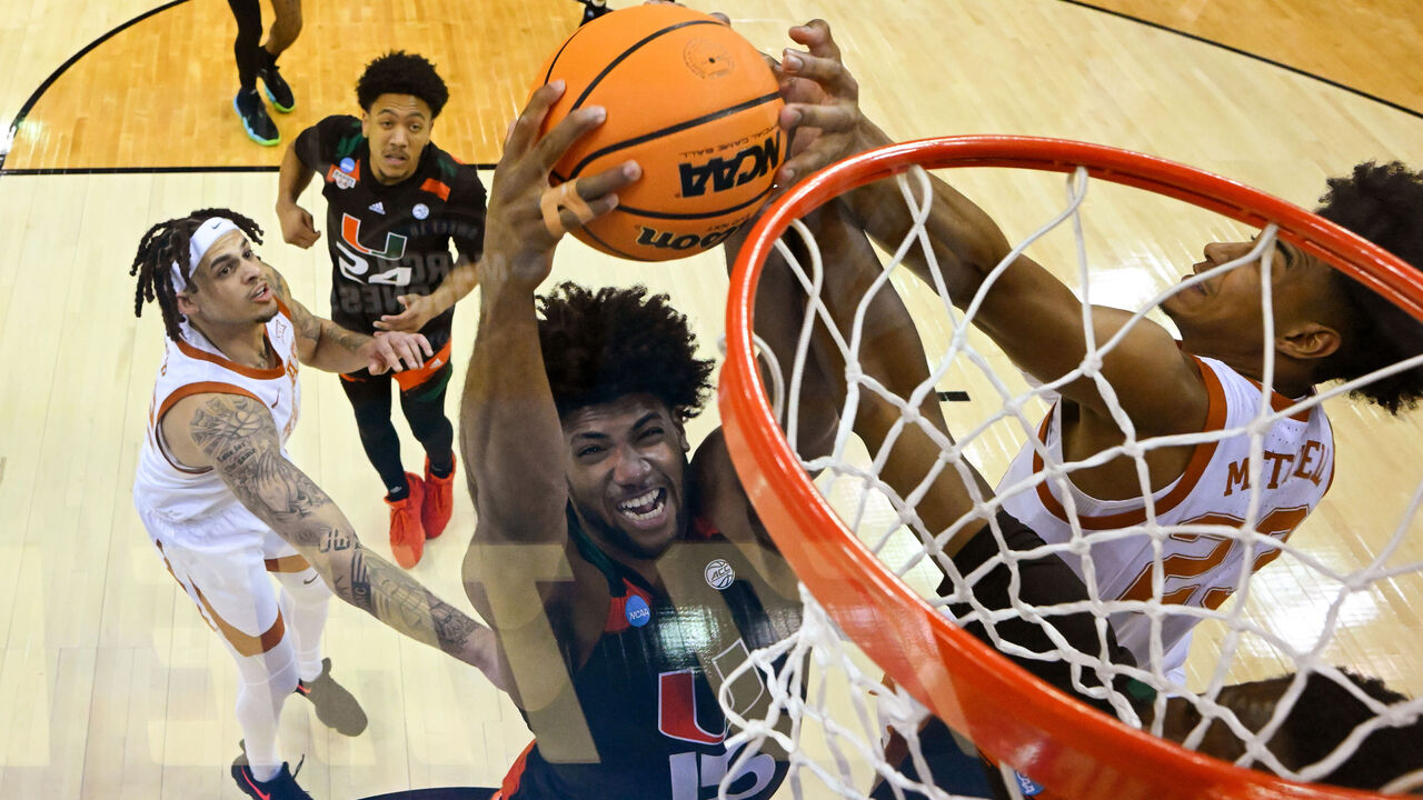 If Miami hopes to upset UConn, it'll probably need another big effort from Norchad Omier. The Arkansas State transfer has been a beast on the glass, registering over 10 boards per contest for the third consecutive campaign. He got the better of Indiana star Trayce Jackson-Davis in the second round, grabbing a game-high 17 rebounds, including eight on the offensive glass.