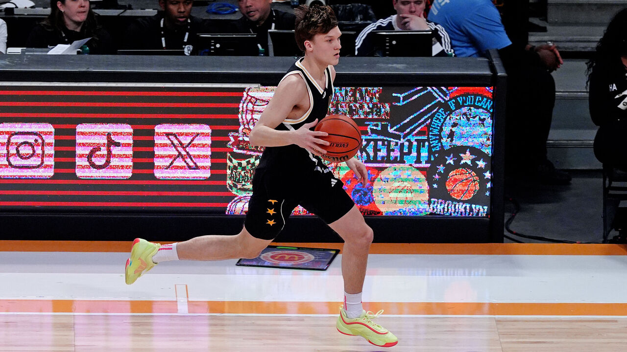 Reibe can fake a handoff and take the ball all the way to the rack instead. He's a legitimate floor-spacing weapon in pick-and-pops, and he showcased his 3-point stroke as a member of Germany's under-18 team at last year's Albert Schweitzer Tournament, making nearly two threes per game on a 57.9% clip.