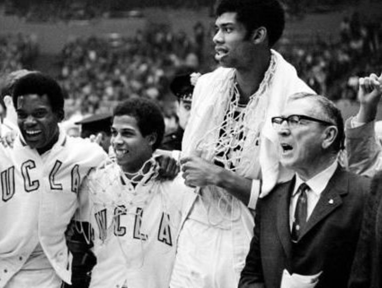 The combined margin of victory of 129 points the 1996 Kentucky Wildcats won their tournament games by averages out to 21.5 points per game. When UCLA won the national title in 1968, it was asked to play only four games. In those tournament games, the Bruins outscored their opponents by an average of 21.3 points, including wins of 32 and 23 points in the Final Four. ... While UCLA had four undefeated champions, this one-loss team stands out above the rest. Why? Because John Wooden said so himself. "It would be hard to pick a team over the 1968 team," Wooden said. "I will say it would be the most difficult team to prepare for and play against offensively and defensively. It created so many problems. It had such great balance."