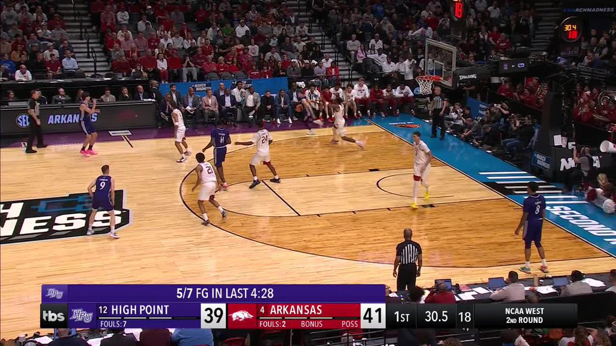 No. 12 High Point down 1 half to Arkansas after Johnston's late triple 🍿