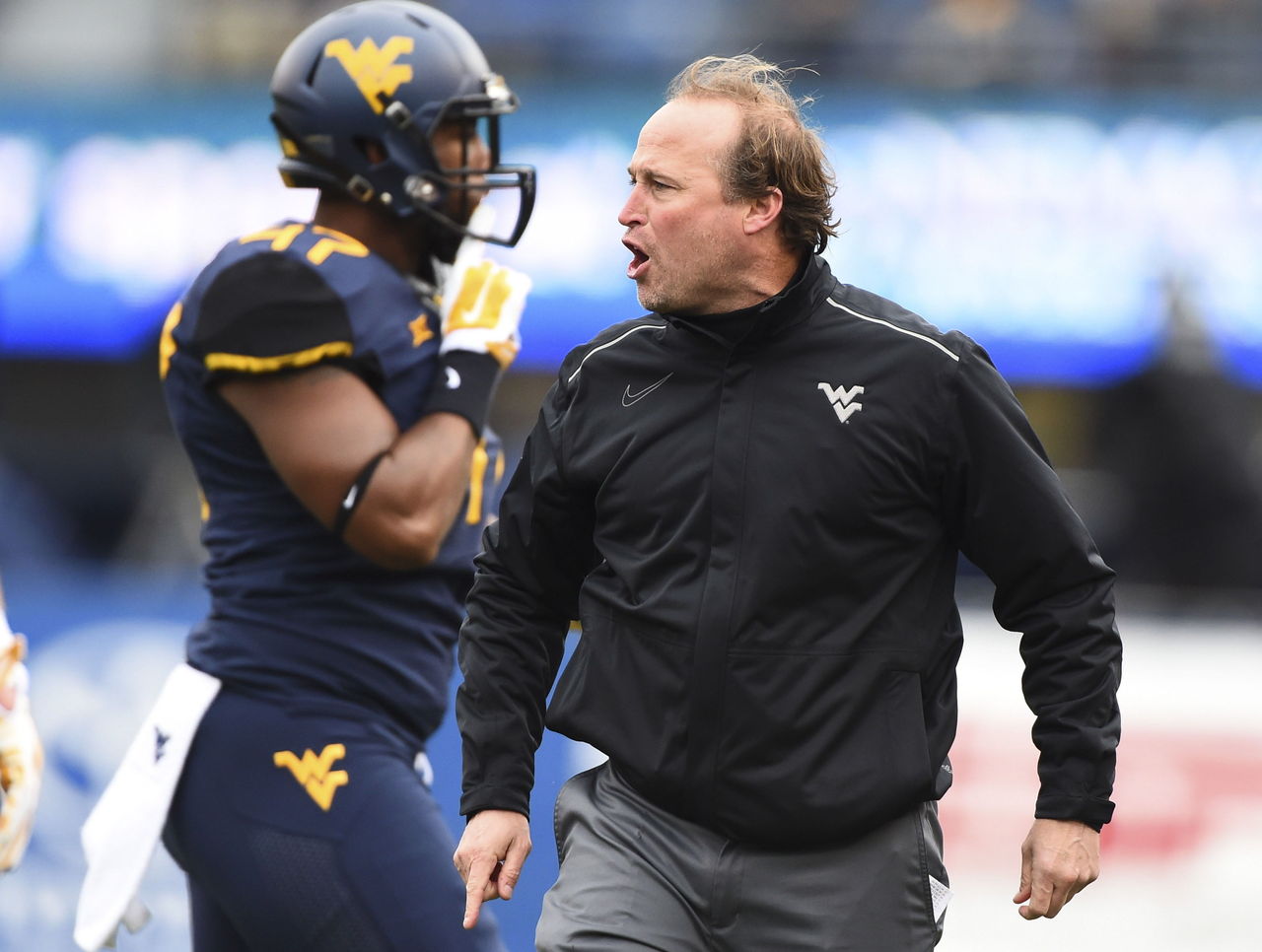 The Mountaineers coach is famous in college football circles for his thinning hair that has a mind of its own whenever a gust of wind kicks up.