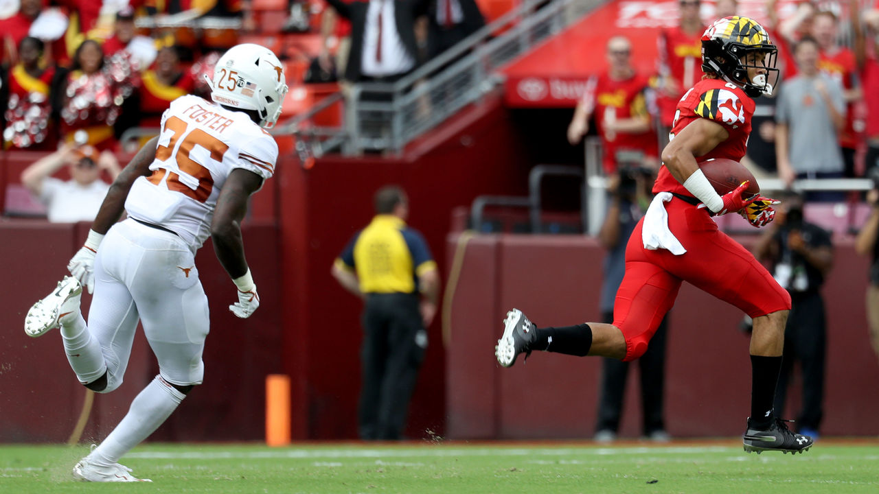 In his first career game, Jones caught, rushed, and threw for a touchdown, helping Maryland upset Texas for a second consecutive year. The true freshman finished his debut with 120 yards of total offense and the historic touchdown trifecta. He's unlikely to sustain such rapid production going forward, but his Week 1 performance is worthy of a spot on the list.