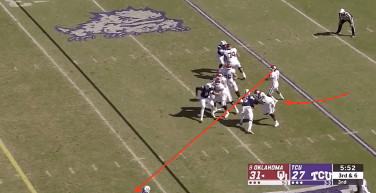 That means edge defenders set wider and linebackers cheat over a little. If the Sooners can get even one or two defenders to hesitate - vacating their leverage - it’s game over after the handoff:
