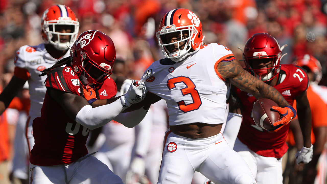 The No. 3 Tigers overcame two red-zone interceptions by Trevor Lawrence and pummeled Louisville 45-10 for their 22nd consecutive win.
