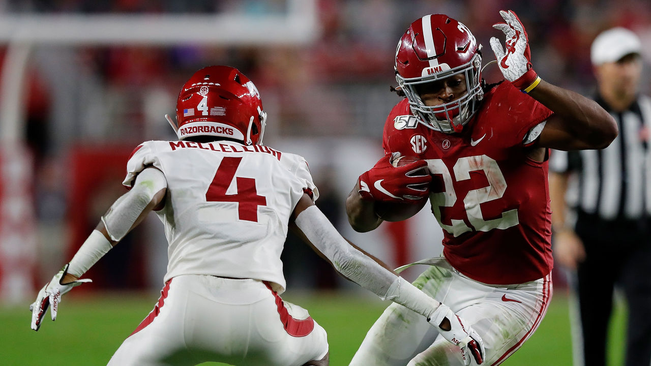 At 6-foot-2 and 230 lbs, Najee Harris averages nearly six yards per touch, and he posted 100-plus-yard games against Southern Miss, Texas A&M, and Tennessee.