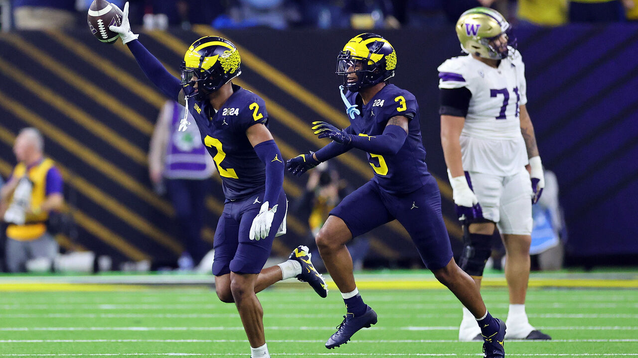 The two stars in the Michigan secondary outshone the receiving core, with Johnson and Mike Sainristil both picking off Penix in the second half. Johnson's interception was a huge backbreaker on the first play of the third quarter, while Sainristil went nearly the length of the field on his return to set up another Corum touchdown.