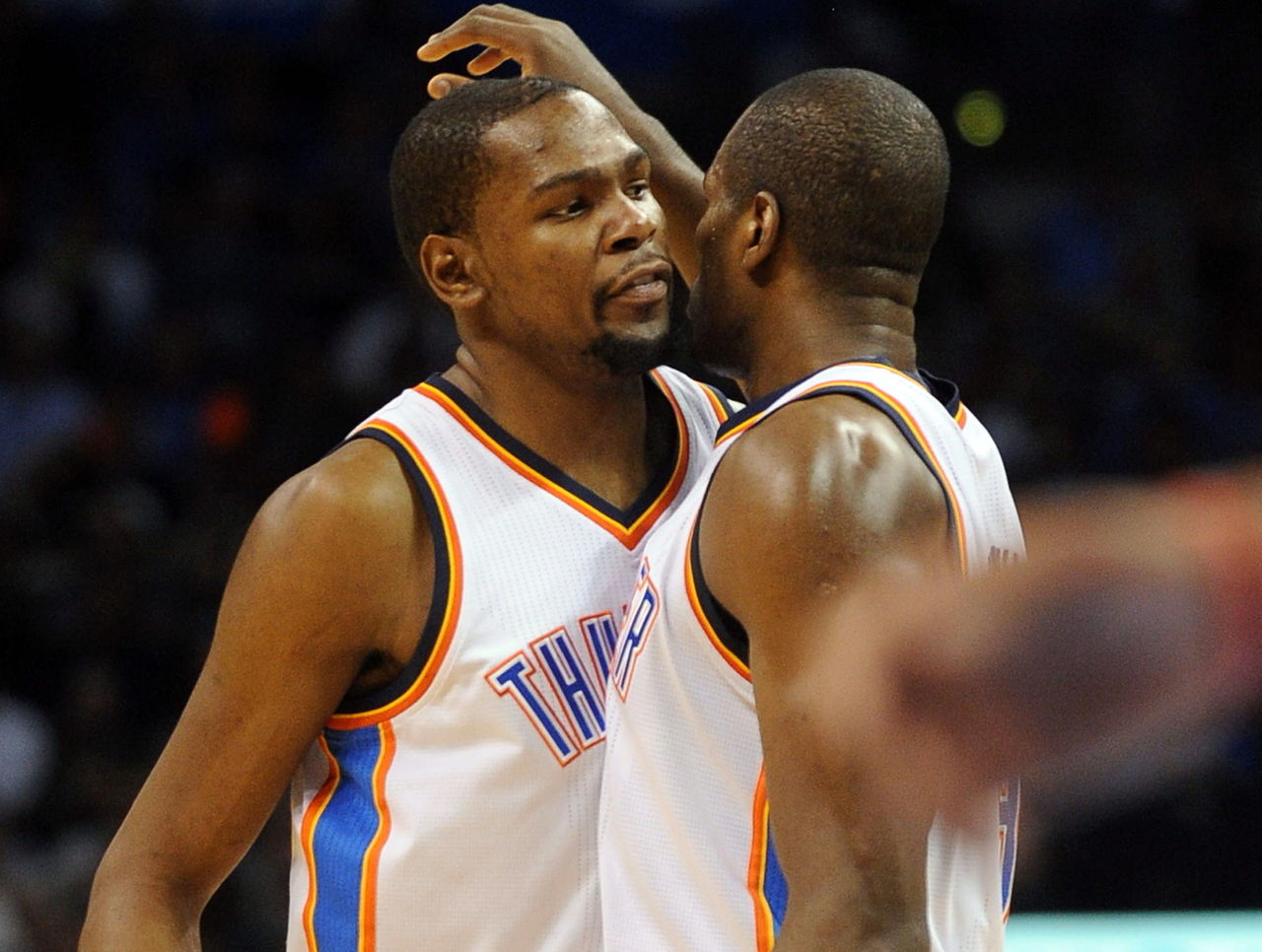 Durant's height is often questioned because his Oklahoma City Thunder frontcourt partner Serge Ibaka is listed at 6-foot-10 - an inch taller than KD's indexed height. Photographs like this cast doubt on that: