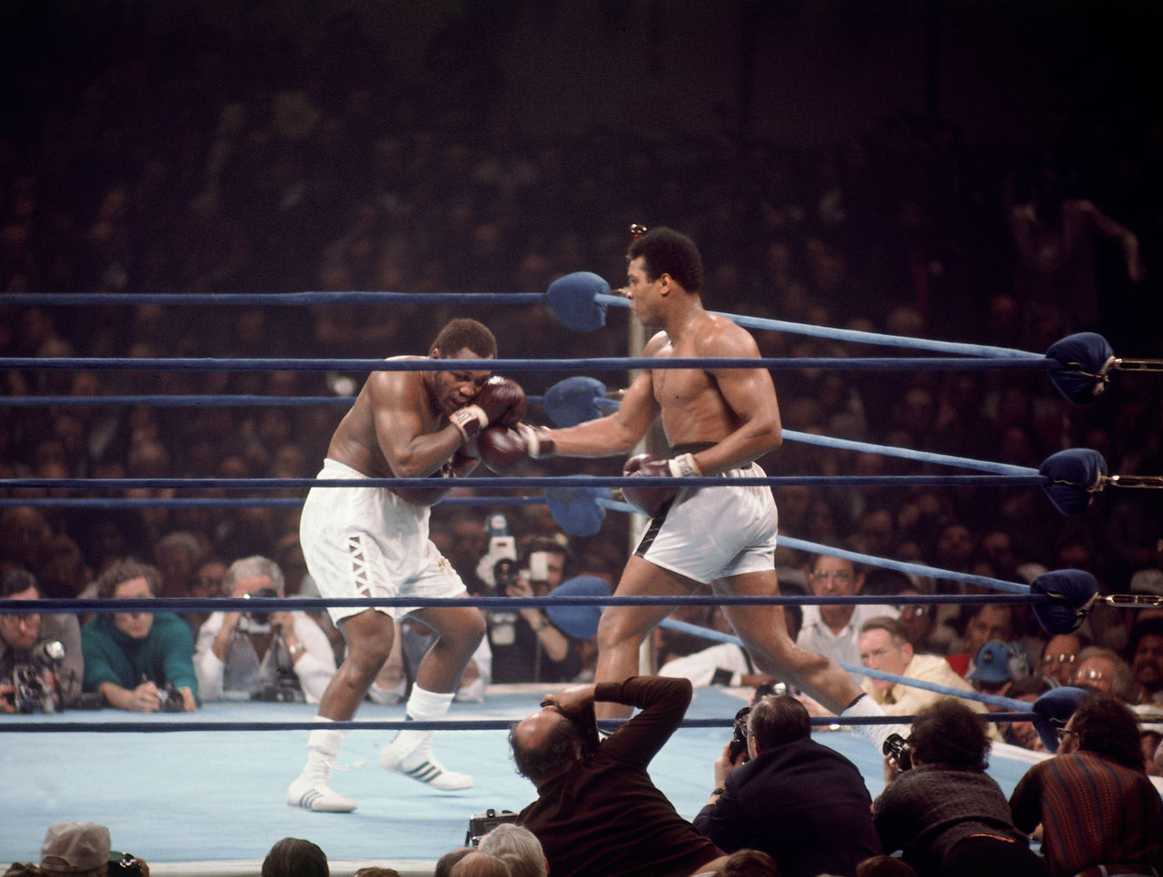 Billed as "The Rumble in the Jungle," Ali's first encounter against a previously 40-0 George Foreman is arguably the greatest fight in boxing history. Foreman and Ali both moved to Kinshasa to train in the summer of 1974, setting up the heavily anticipated encounter.