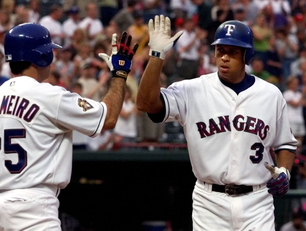 As a free agent after the 2000 season, Rodriguez stunned the baseball world by signing the then-richest deal in baseball history - 10 years, $252 million - with the Texas Rangers. Though he put up some of his greatest numbers in a Rangers uniform and won his first MVP award with the team, his years in Texas were tumultuous, finishing in last place each of his three years with the club. After nearly joining the Red Sox in the winter of 2003 - before the trade was squashed over money - the Yankees acquired Rodriguez in February 2004; he agreed to move to third base with Derek Jeter manning shortstop in the Bronx.