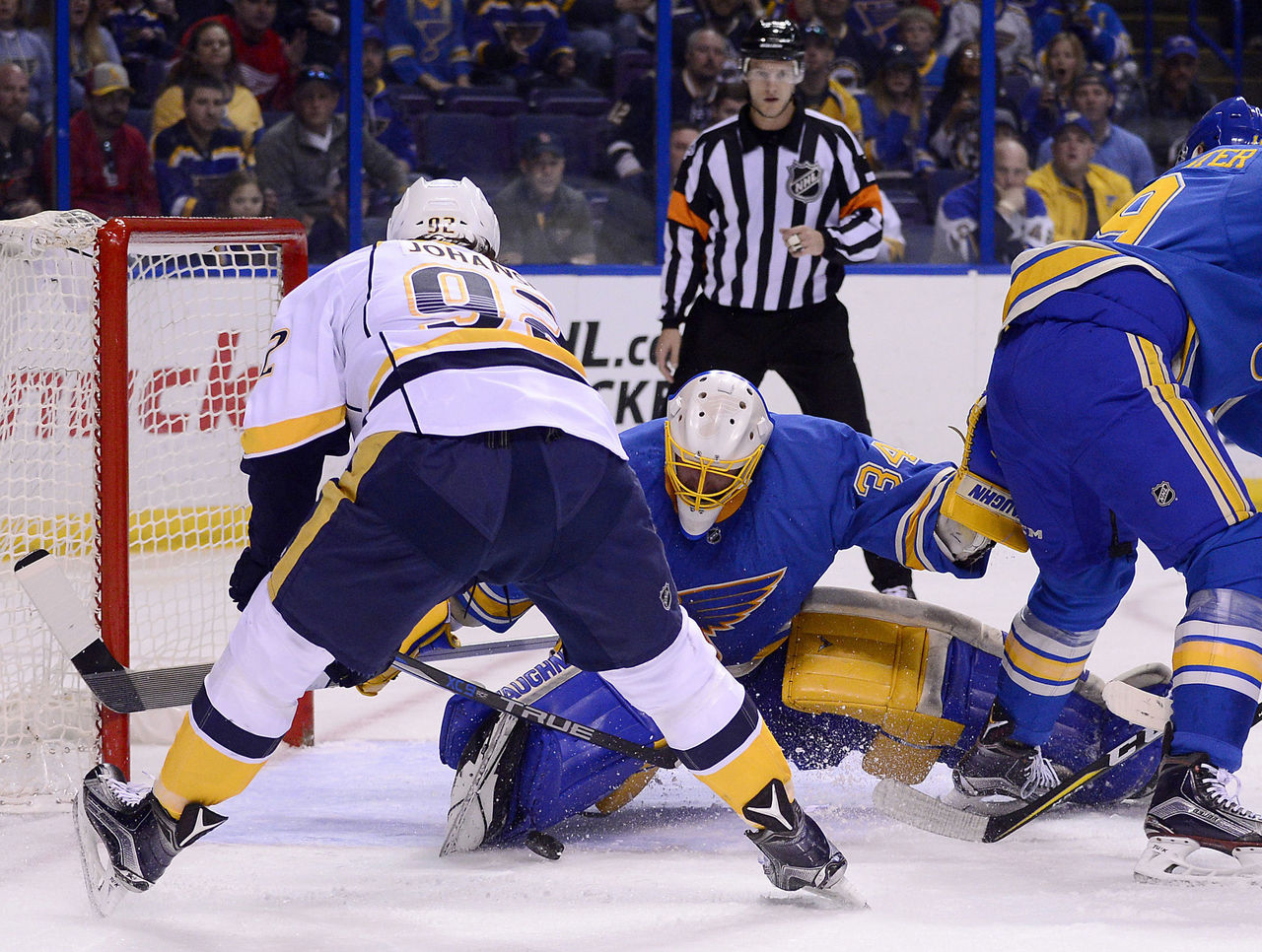 The Predators' top line of Ryan Johansen, Filip Forsberg, and Viktor Arvidsson is dangerous, but they lack scoring depth on their bottom three lines. If the Blues' wingers play tight to the points and force Ellis, Subban, and Josi to simply throw pucks deep rather than firing off point shots, St. Louis' sturdy D-core should manhandle Nashville's forwards down low.