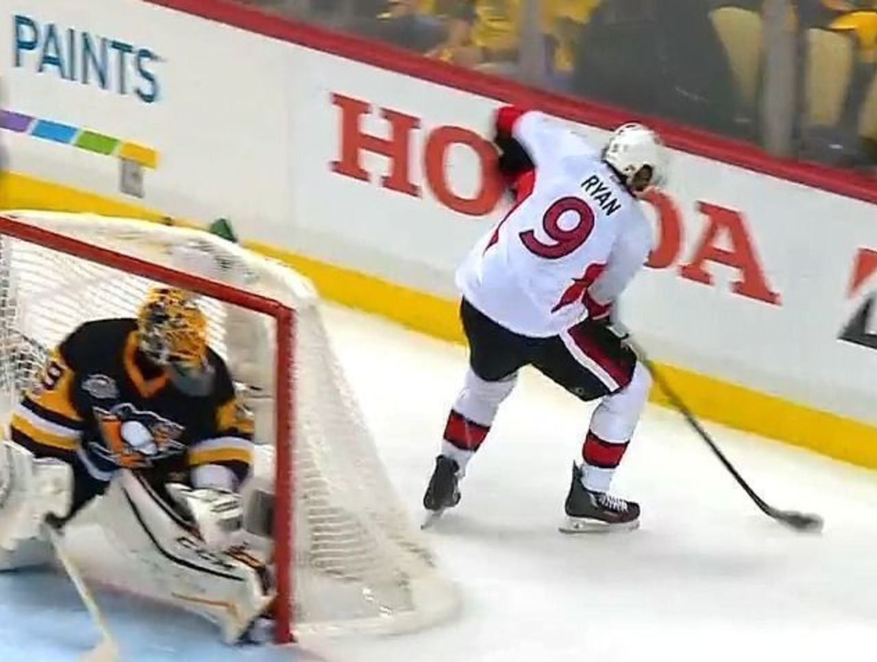 Using strong puck support, winger Bobby Ryan was able to scoop up the loose puck, feed Pageau, and capitalize on an opportunity created by speed in the offensive zone.