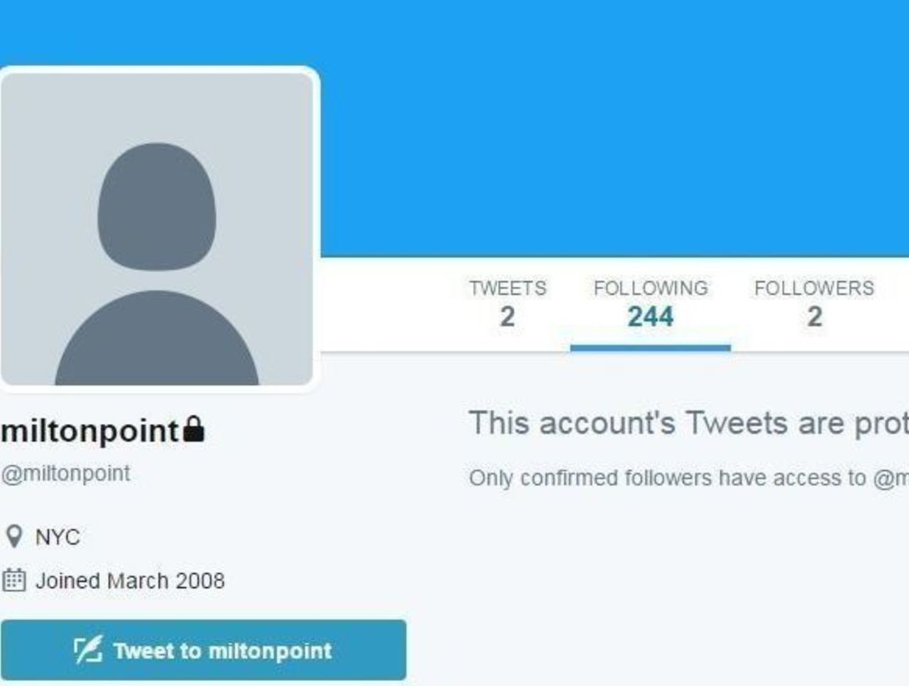 His findings eventually led him to @miltonpoint, an account that's tweeted just two times and is protected from the public: