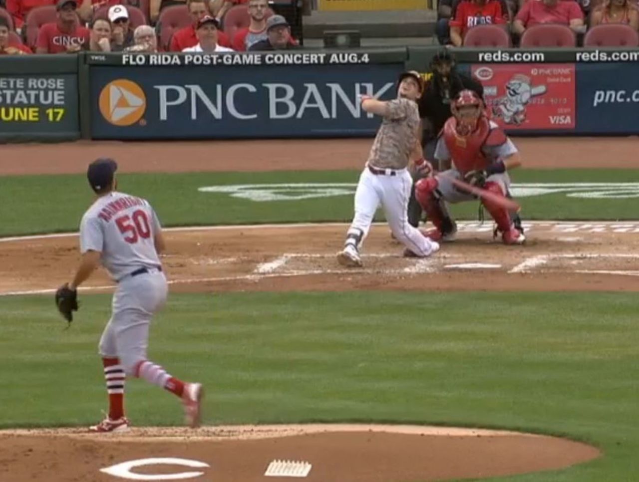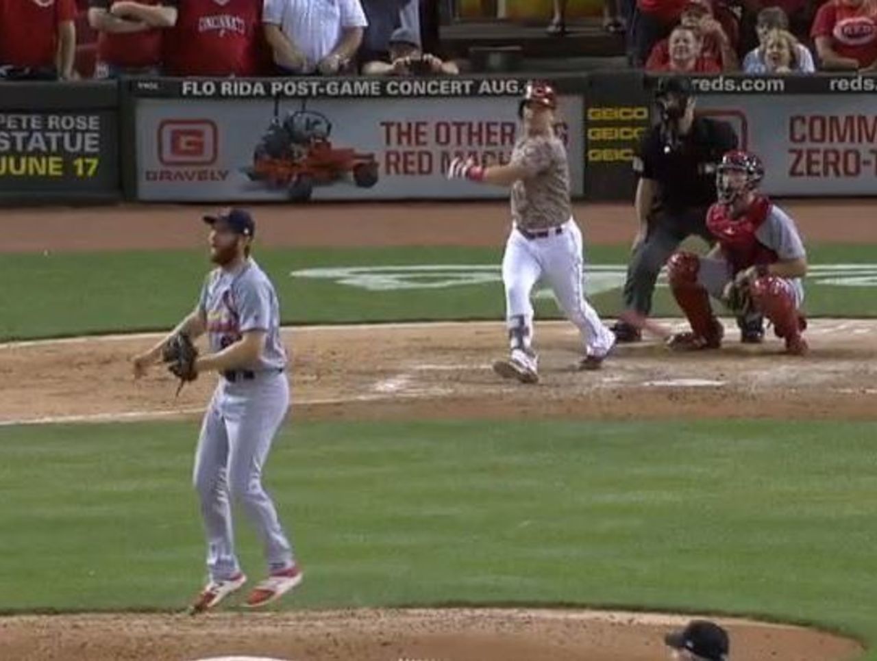 In all likelihood, the Reds outfielder saw fastball out of Wainwright's hand, but got fooled on the changeup.