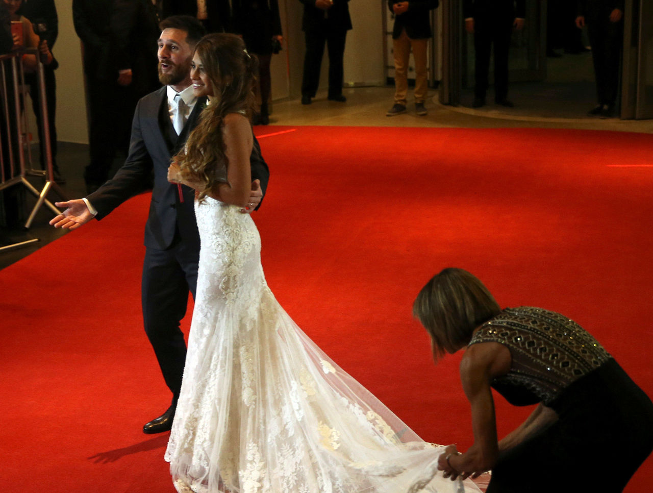 After the ceremony, Lionel and Antonella walked along the red carpet and posed for photographers.