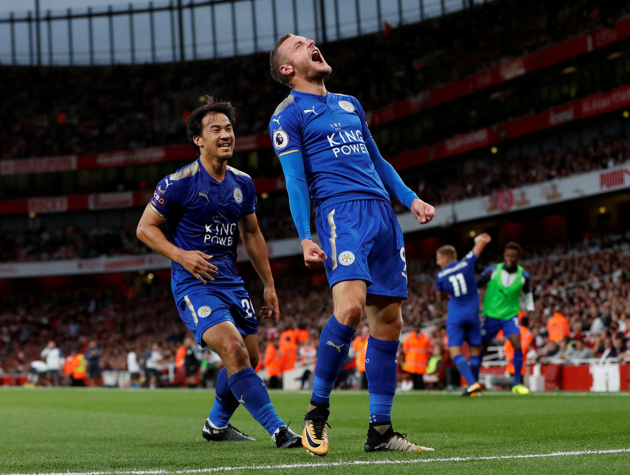 Merely 160 seconds later, the Foxes were level. Marc Albrighton played a short one-two on a corner, and his deep, whipped delivery found the considerable frame of new boy Harry Maguire. The Sheffield lad has the look of someone who was raised on a diet of Yorkshire puddings and slices of parkin, but showed the athleticism of a whippet trained on the Dales when he rose at the back stick to nod the ball across goal. Shinji Okazaki was similarly alert, leaping above Granit Xhaka to plant a header beyond Petr Cech.