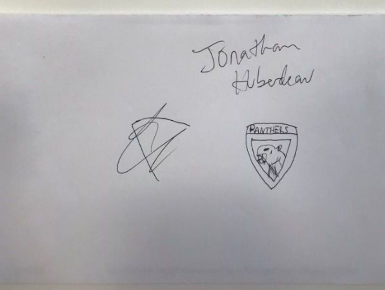 Jonathan Huberdeau of the Florida Panthers didn't do too poorly recreating the shield logo introduced by his team last season.