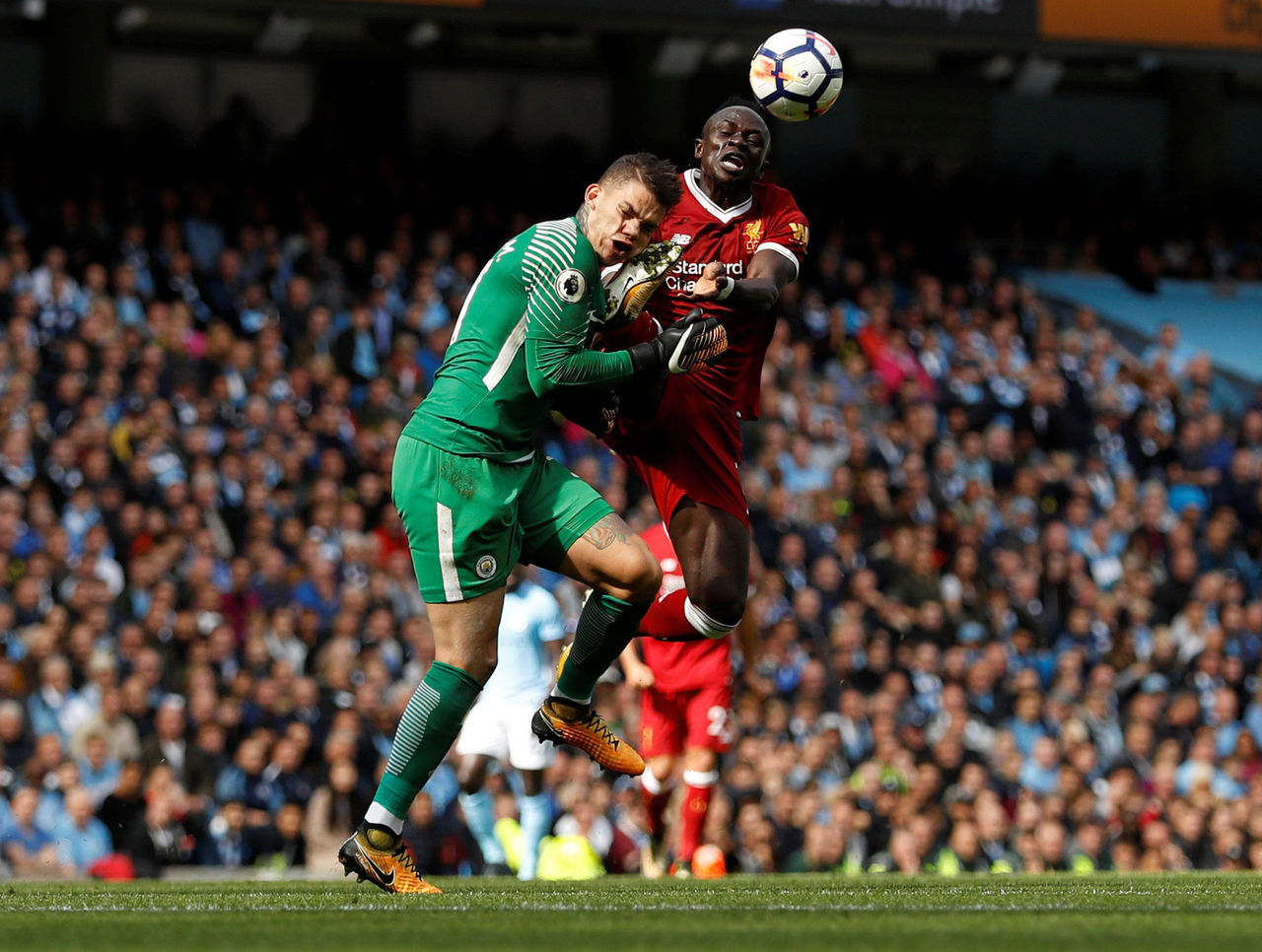Manchester City goalkeeper Ederson Moraes was left prostrate on the Etihad Stadium turf in Saturday's 5-0 win over Liverpool after receiving a boot to the face from Sadio Mane after 37 minutes.