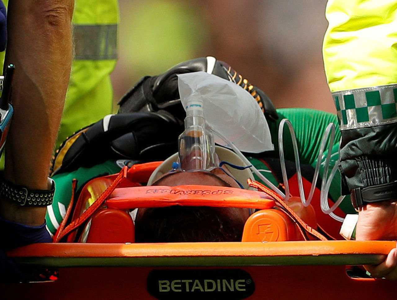 Ederson was subsequently stretchered off the pitch and replaced by Claudio Bravo between the sticks.