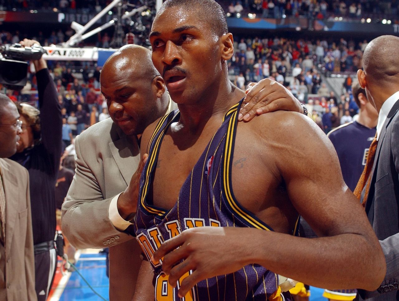 Almost hard to believe sometimes that the Blazers were once the problem children of the NBA, when for the last decade they've been about as cuddly a franchise as the Association could ask for. The Jail Blazers era hurts Portland in Public Dysfunction but helps them in Cult Appeal, where they've drawn strong for motivations both vicarious and voyeuristic for most of the century.