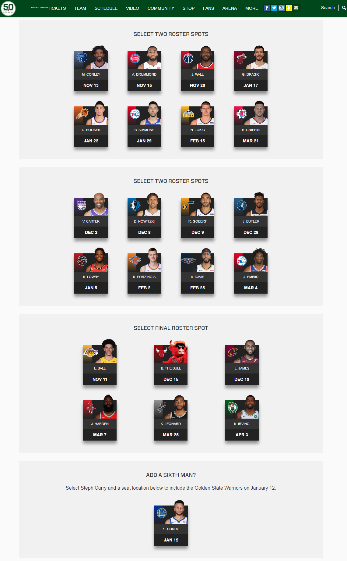 The team has a ticket promotion going for fans to purchase a mini-pack, with the option to choose opponents based on their star players.