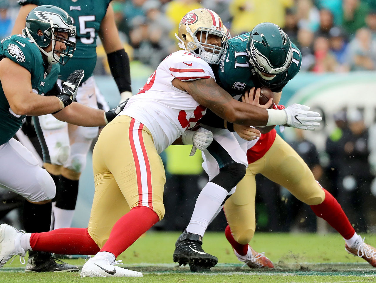 Buckner's 45 tackles trail only Khalil Mack among defensive linemen, and he's managed to excel this season on a woeful 49ers squad. The second-year defensive tackle also disrupts the game in other ways, recording three passes defensed, 1.5 sacks, and a forced fumble. Buckner certainly isn't the reason San Francisco has managed only one win in 2017. - Amato