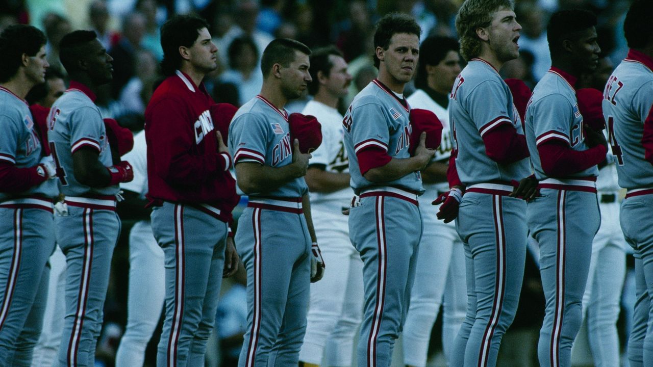 Led by fiery skipper Lou Piniella, Hall of Famer Barry Larkin, and the "Nasty Boys" bullpen, which featured NLCS co-MVPs Randy Myers and Rob Dibble, these 91-win Reds - losers of 87 games in 1989 - went wire-to-wire in '90 before sweeping the 103-win defending champion Athletics in one of the most shocking World Series upsets ever. Billy Hatcher set two single-series records by hitting .750 and recording a hit in seven consecutive World Series at-bats, but starter Jose Rijo - a former member of the A's - won World Series MVP after going 2-0 with a 0.59 ERA. -- Sharkey-Gotlieb